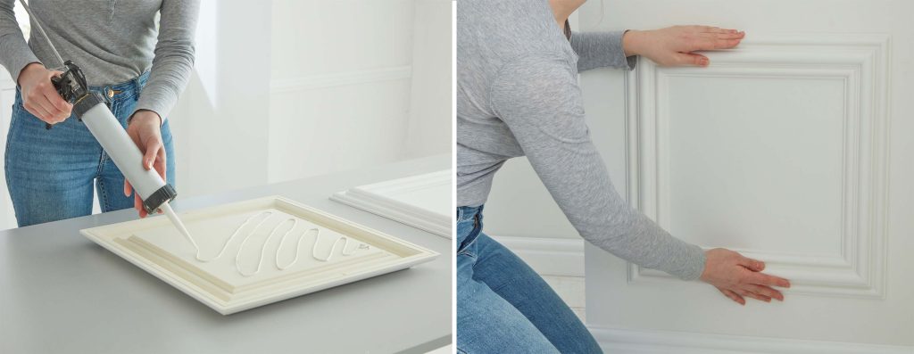 De eneste verktøyene du trenger er vater og målestokk, for å marker plassering på veggen, og en skjelettpistol for å trykke limet ut i fra tuben.