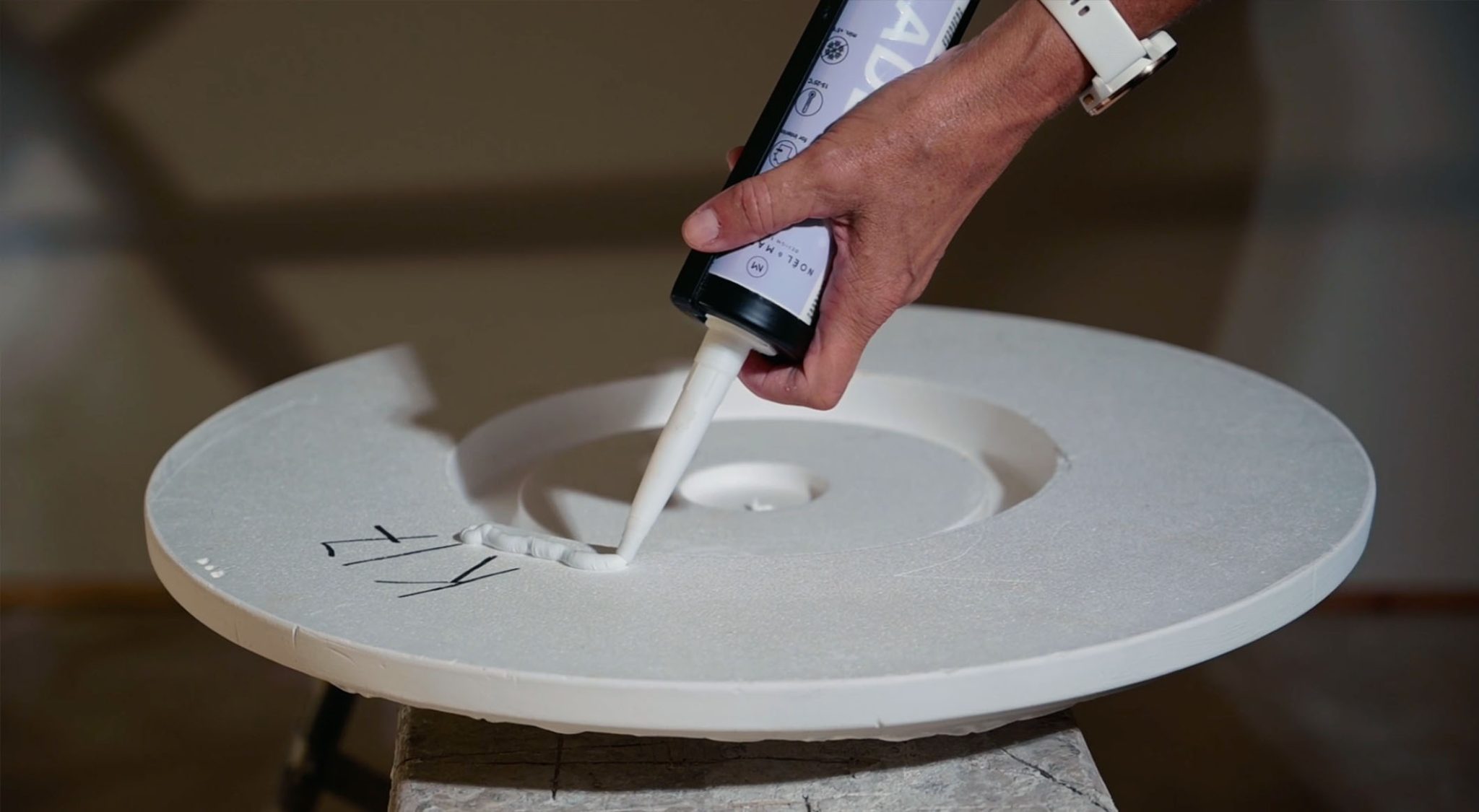 Overflødig lim tørker du enkelt bort med bruk av en fuktig klut etter montering.