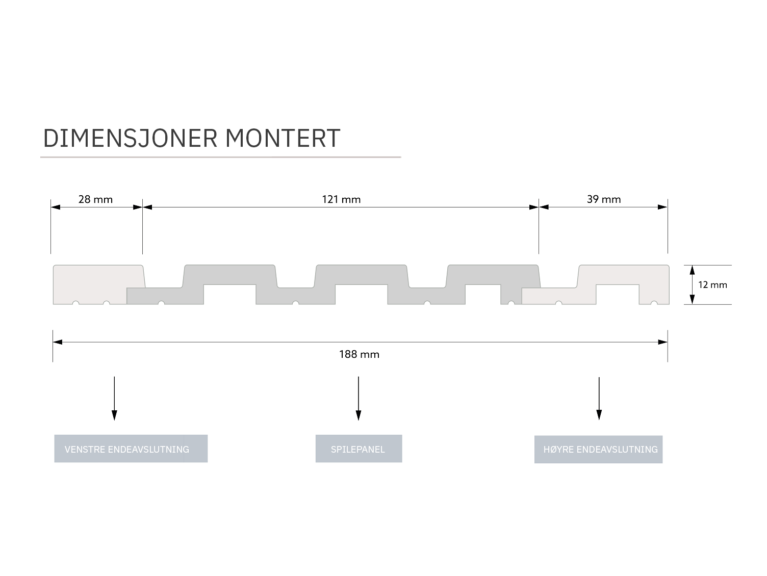 Ønsker du å avslutte midt på en vegg, løses dette enkelt med våre endeavslutningslister venstre side og høyre side.