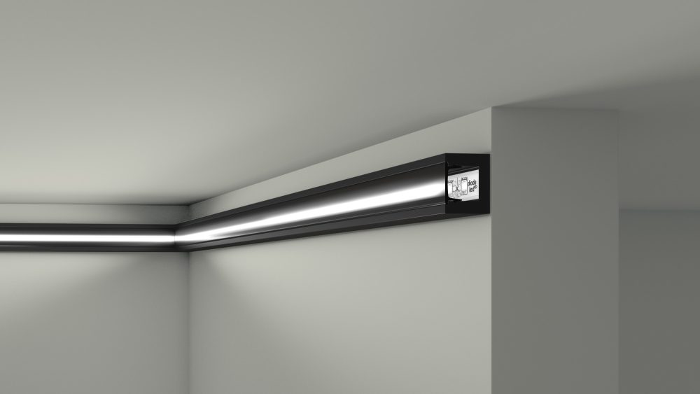 Lyslisten monteres på vegg i ønsket høyde sammen med ønsket LED-stripe.