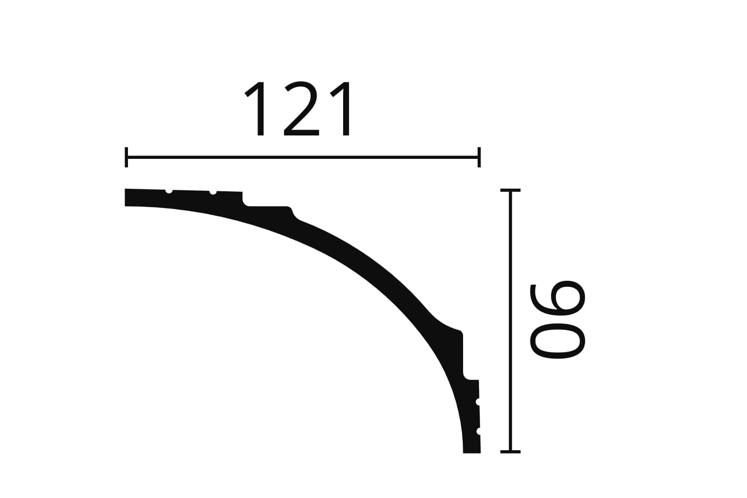 Lyslist IL18 leveres i 90x121x2000mm og er produsert i high density polystyren (HDPS)