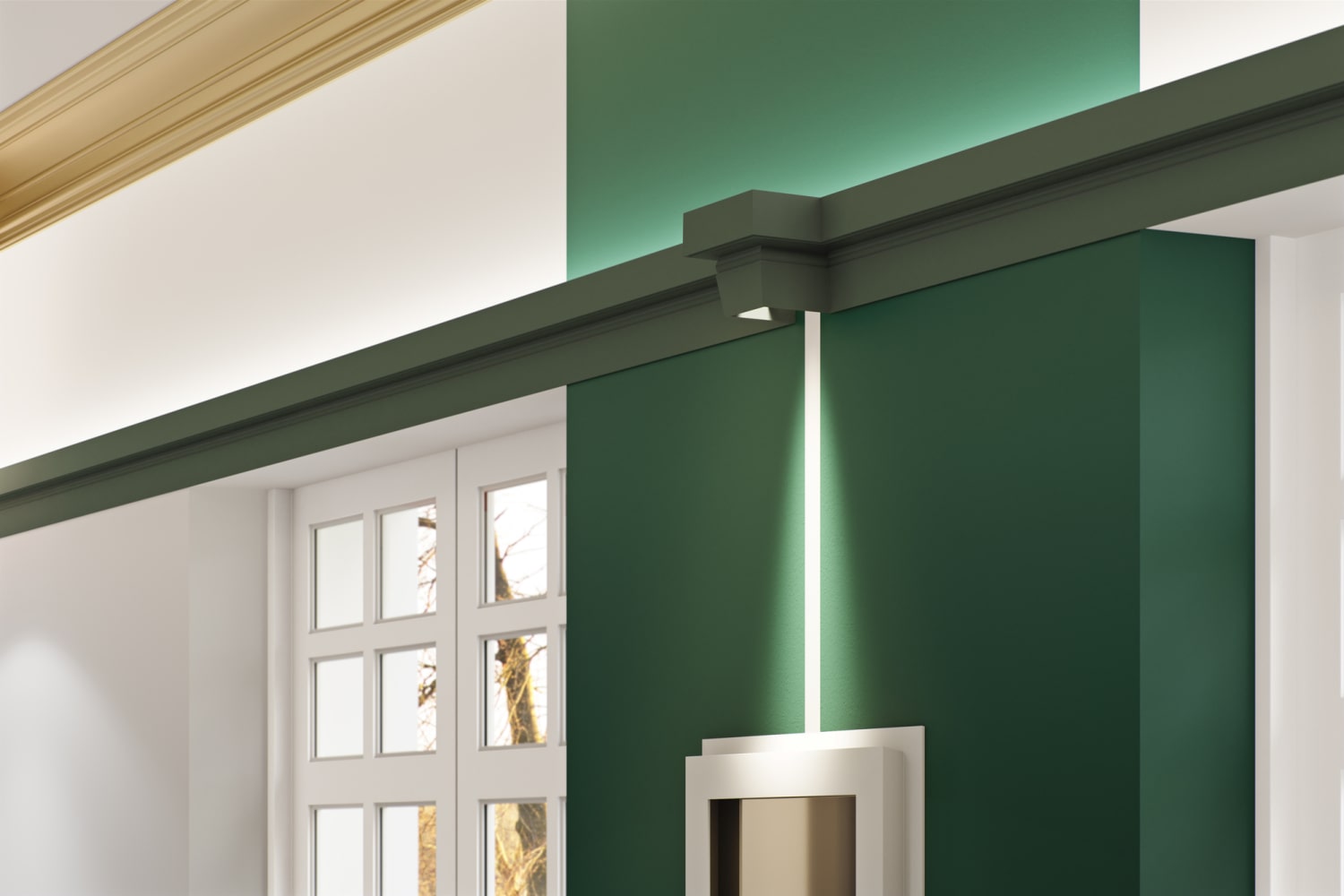 Lyslisten monteres på vegg i ønsket høyde sammen med ønsket LED-stripe. Den fungerer også ypperlig som en tradisjonell taklist.