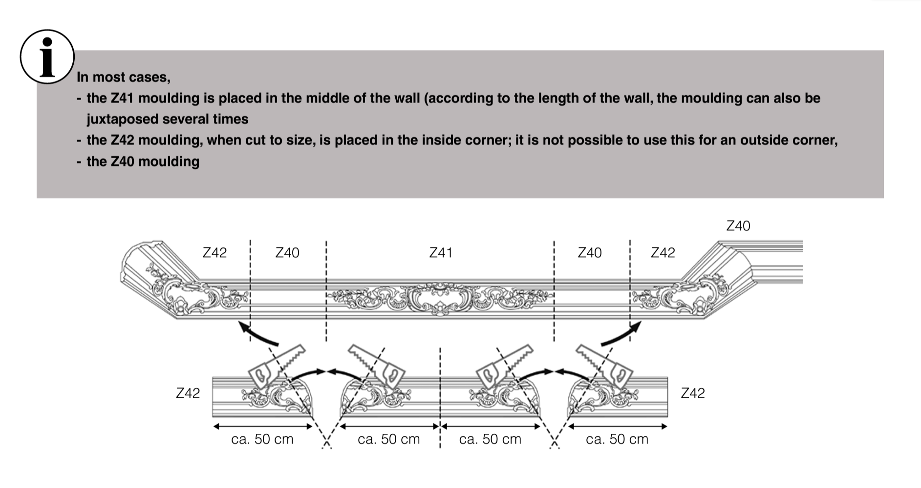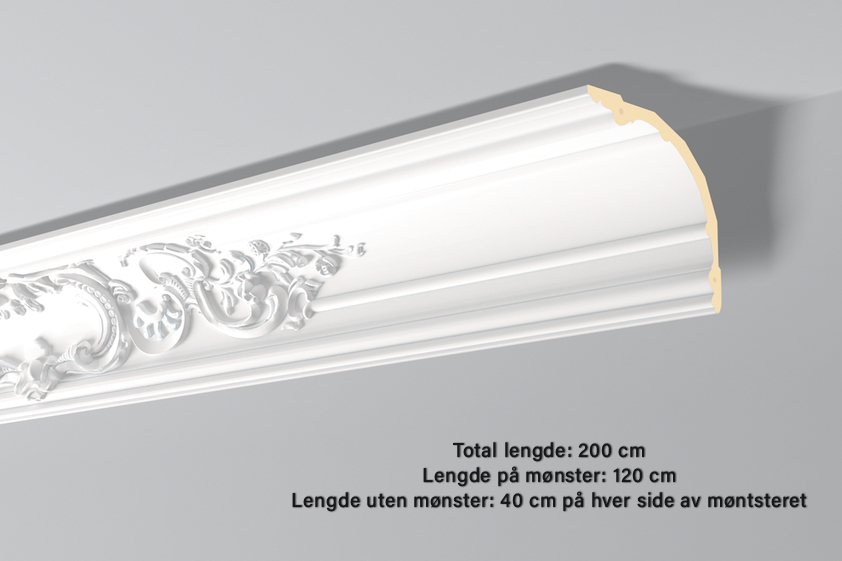 Dette er en stor klassisk hulkil dekor taklist som passer til vårt system med Z40. Taklisten kan leveres ferdig tilpasset hjørner i Z42