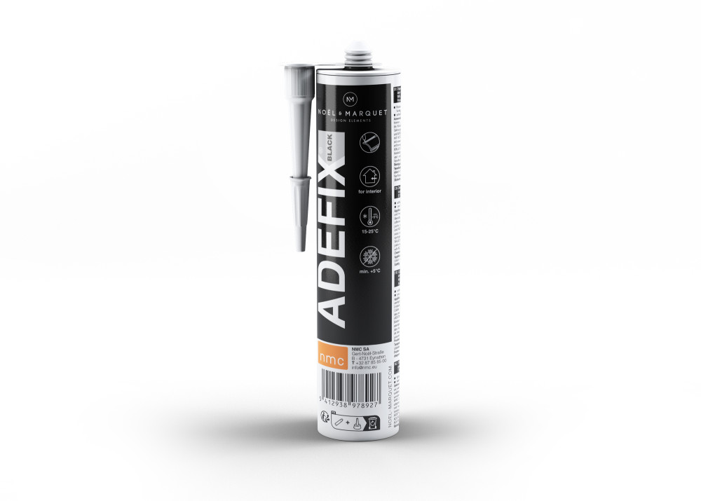 Adefix sort lim brukes til montering av innvendig sorte lister. Limet er acryl basert, slik at dette også kan brukes som en fugemasse til å tette sprekker. Et miljøvennlig alternativ.
